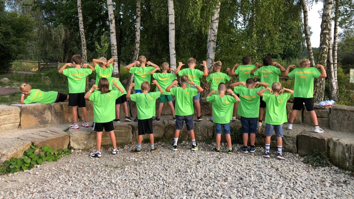 Zuerst haben wir Fußball gespielt, dann haben wir coole Mannschaftsshirts bekommen und dann haben wir eine Wasserrutsche aufgebaut und sind gerutscht. Danach haben wir ein Lagerfeuer gemacht. Dann haben wir in unserem Zimmer UNO gespielt (Anm. Trainer: mitten in der Nacht) und sind schlafen gegangen.
